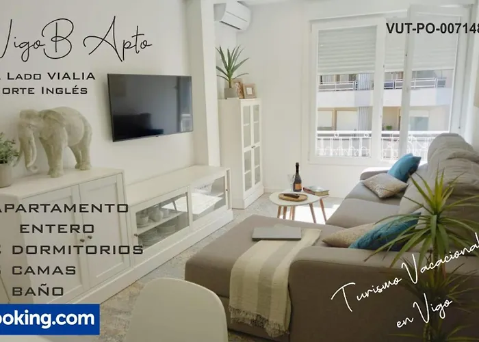 1-pokojowy Vigob Apto En El Centro Al Lado Corteingles leży 3 km od takiego miejsca kultu jak Sanktuarium Matki Boskiej w Guia oraz oferuje przechowalnię bagażu. Apartament o powierzchni 60 m^2 dysponuje również słonecznym patio z widokiem na miasto.